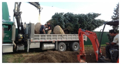This photo is a good example of the heavy duty equipment VTS has access to for the delivery of mature trees. These trees can weigh thousands of pounds each and be 20-
